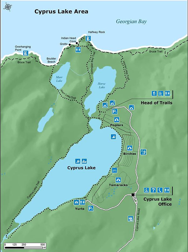 The park is accessible from the south along Highway 6 or from the north via Owen Sound Transportation Company MS Chi-Cheemaun, which operates during the spring, summer and fall. Check MS Chi-Cheemaun's schedule online or contact them at 519-596-2510.